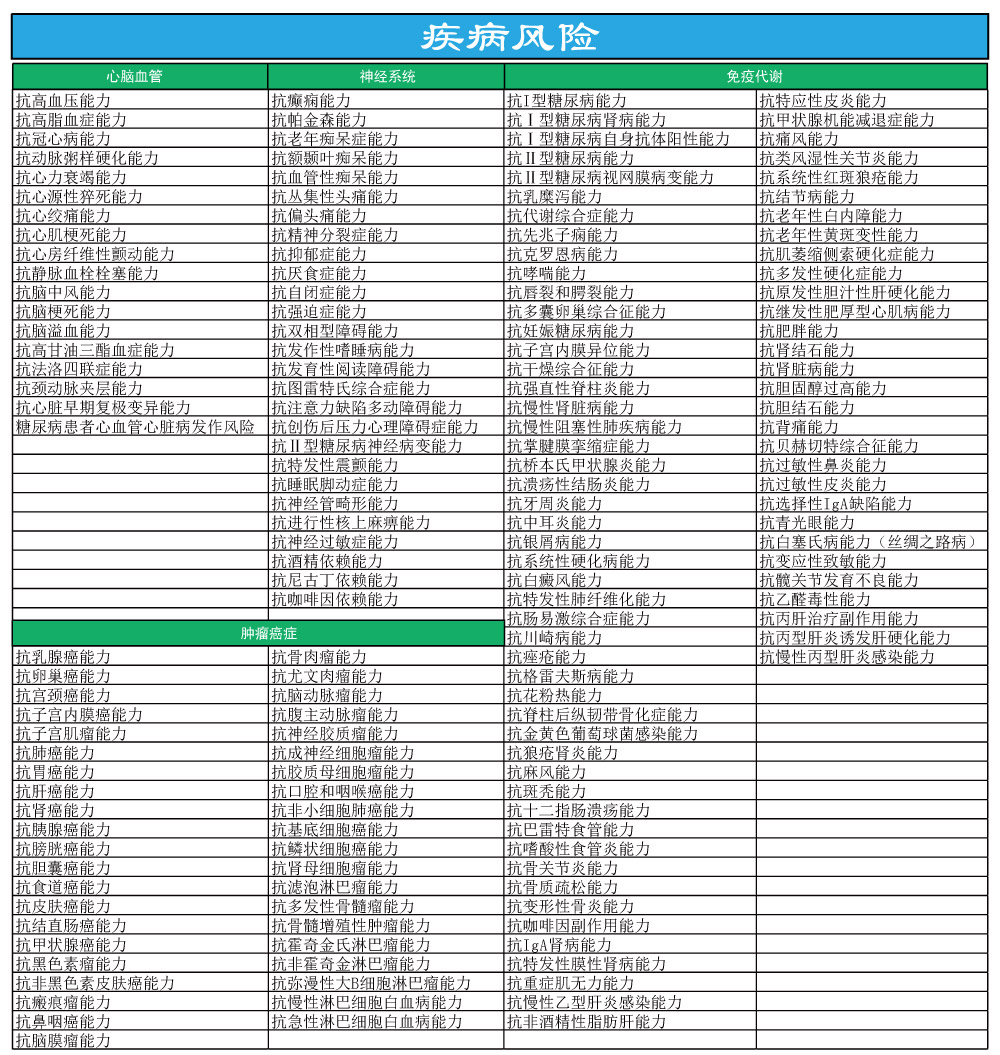 ASA芯片全基因,共检测70万个位点,涵盖疾病风险、遗传疾病、精准用药、特质基因。